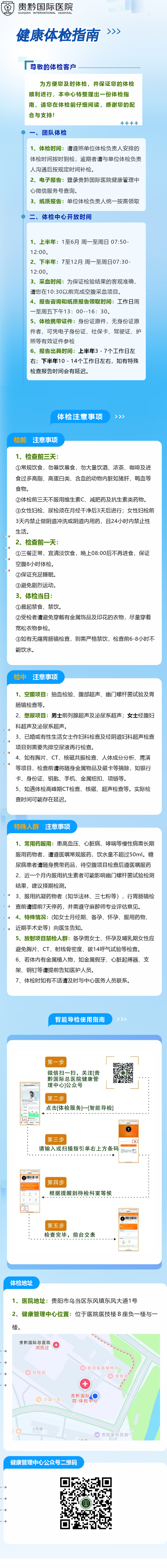 ▉贵黔国际总医院健康管理中心▉联系电话:0851-86277680联系地址:贵州省贵阳市乌当区东风大道1号(地图导航请直接搜索贵黔国际总医院)▉工